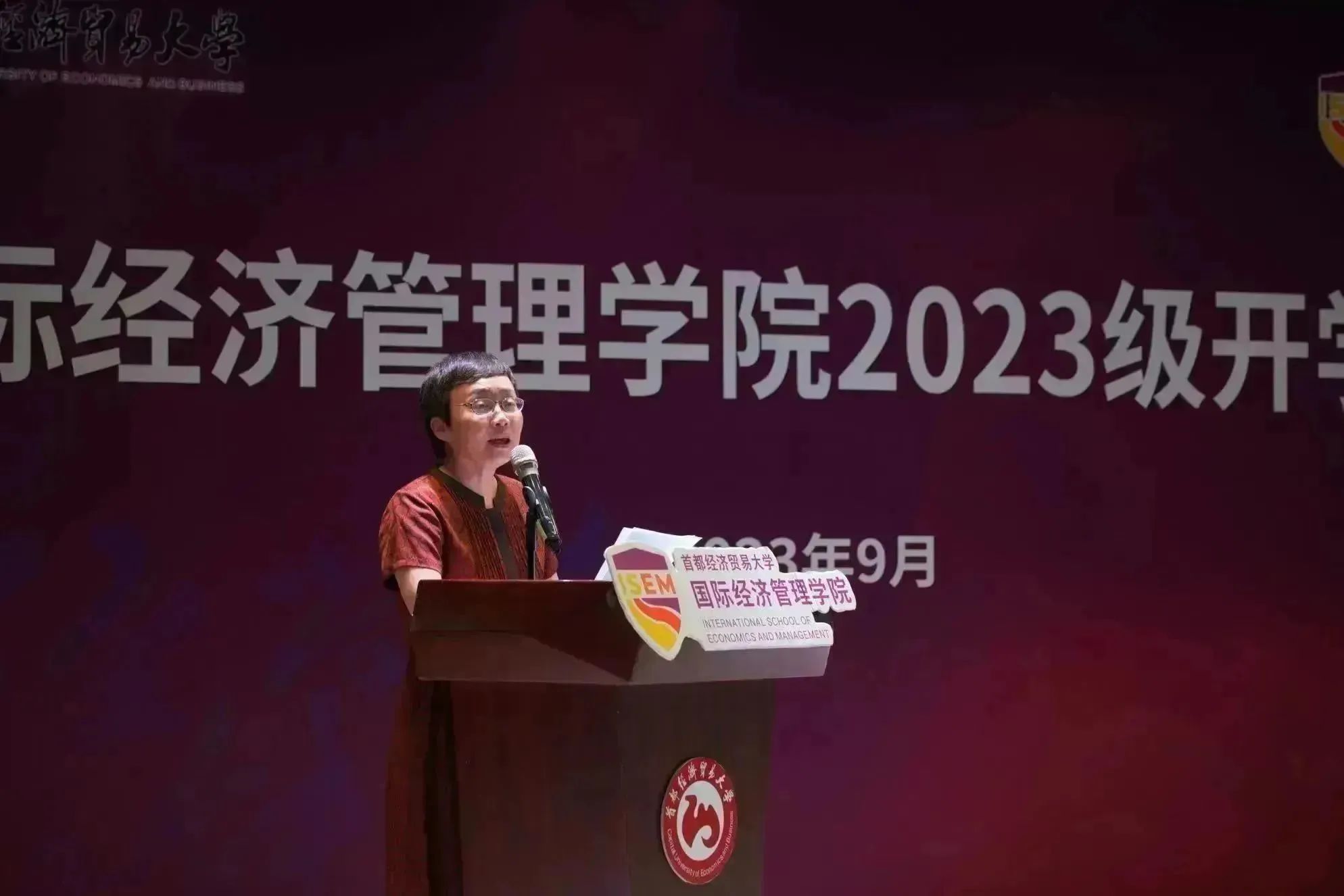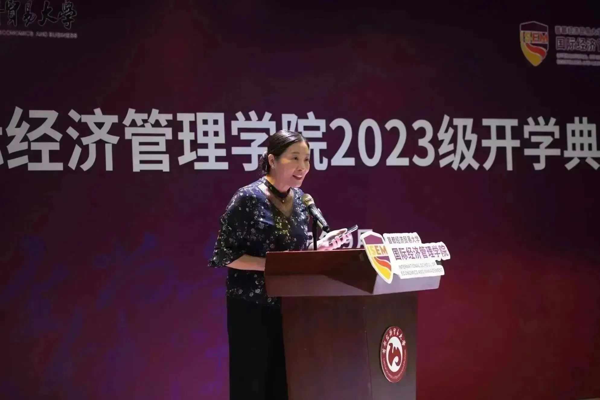 新生代表揭子菡发言,她回忆了高中的拼搏经历,并表达了对未来国经管生活的期待与向往。她希望可以借助学院这个广阔而绚丽的平台展现自我,不断进取,全面发展。她表示,将积极参与,勇敢践行,锻炼自己,加强合作,并以学长学姐为榜样,用奋斗实现自己的梦想。