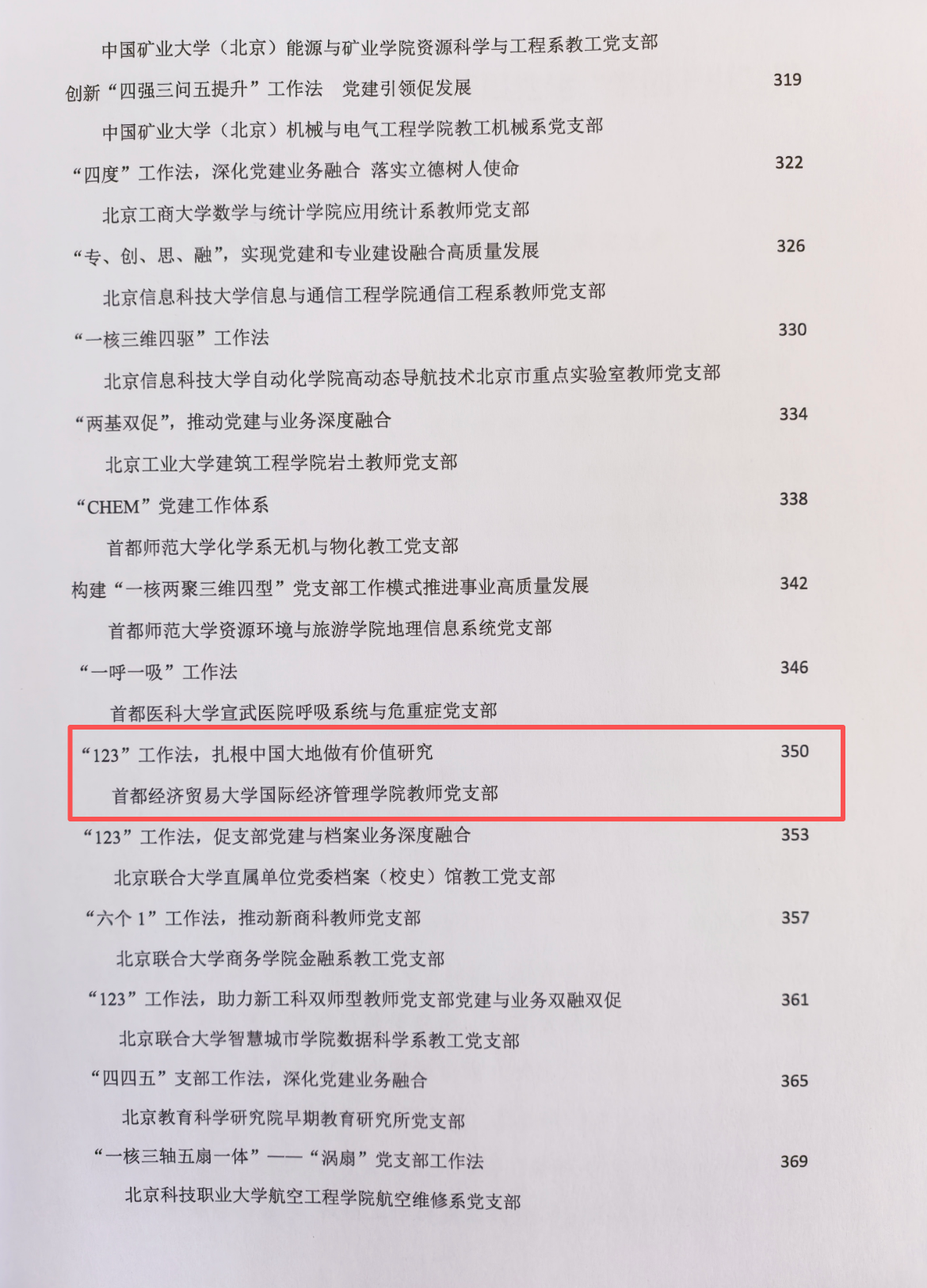 近日,北京市委教育工委公布了北京高校教师党支部书记工作法优秀案例名单,我院教师党支部的“‘123’工作法,扎根中国大地做有价值研究”工作案例成功入选。