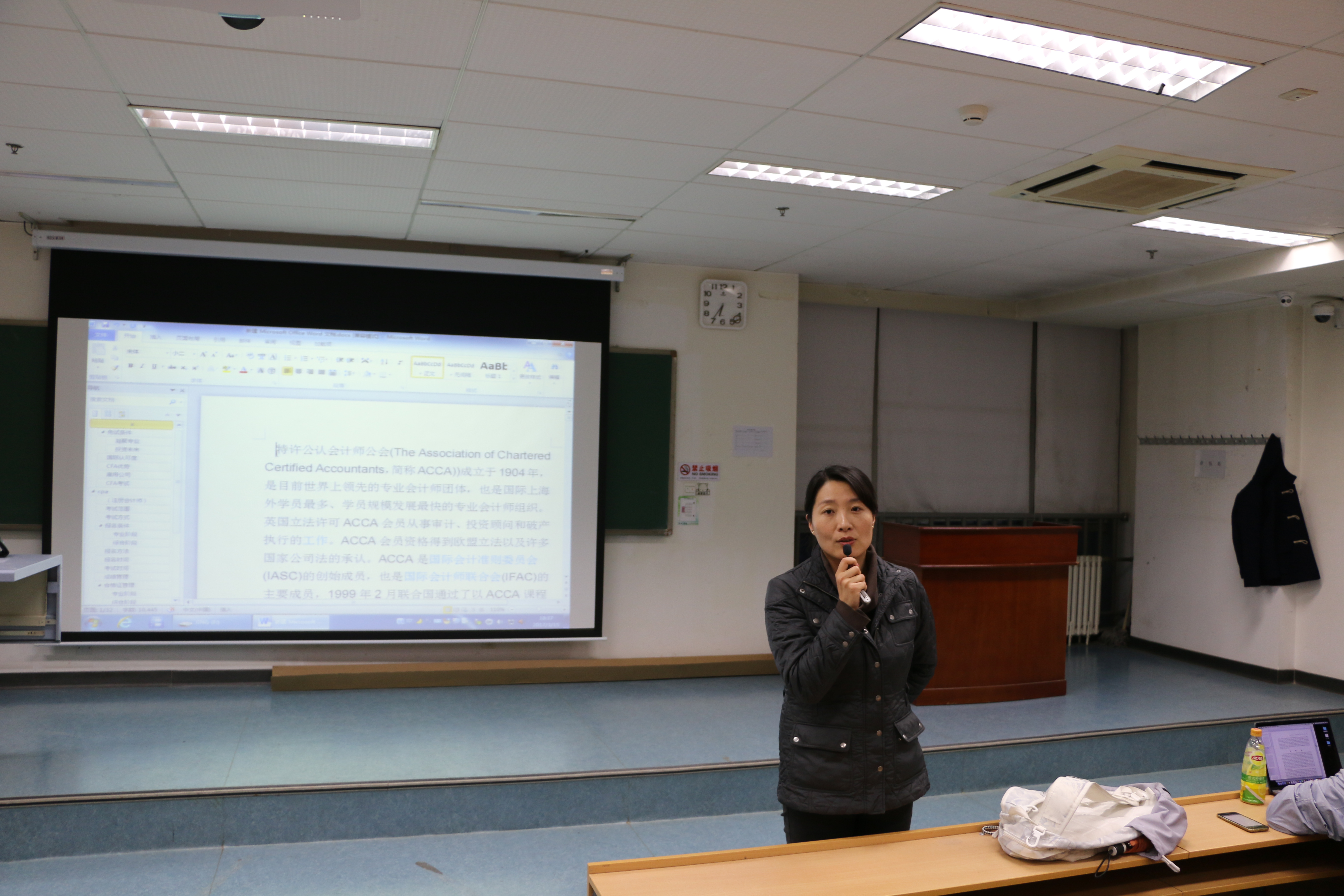 讲座上,王琼用他自己的学习和工作面试的经历,让同学们意识到相关从业证书对自己职业发展的重要性以及提早树立目标,提前做准备的必要性。着重为大家介绍了ACCA、CFA和CPA这三种考试的详细信息。在介绍ACCA考试时,王琼通过对比英国税法与中国税法的不同,让同学们更清晰了解了ACCA考试科目的内容;并用马云阿里巴巴上市的经历,让同学们了解了股权融资与银行信贷等金融方面的知识。同时也介绍了有关ACCA考试费用,免试条件等相关的考试信息。