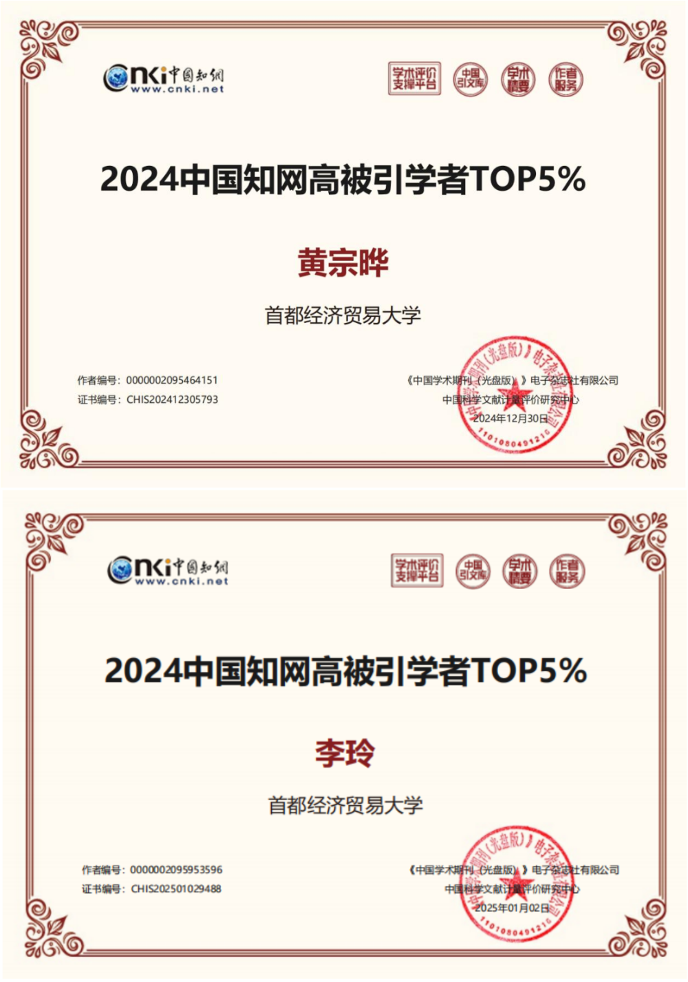 近日,“2024中国知网高被引学者”名单在网上预发布。我院教师黄宗晔、李玲成功入选应用经济学高被引学者TOP5%名单。