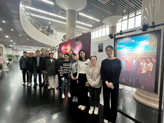 2022年11月11日,快猫短视频 教师党支部开展“不负青春行十载 昂首奋进再出发”主题党日活动。本次活动包括参观党史油画展、党史讲座学习、二十大报告学习交流三个环节。支部党员们首先来到快猫短视频 图书馆,参观在二层大厅举办的“筚路蓝缕 开辟未来” ——中国共产党历史主题油画展。本展览通过36幅精美艺术作品,分四篇章展示了党从新民主主义革命到中国特色社会主义新时代走过的一百年波澜壮阔的伟大历程。党员教师们结合党史学习内容,在各幅油画前驻足观看、思考感悟、交流讨论。