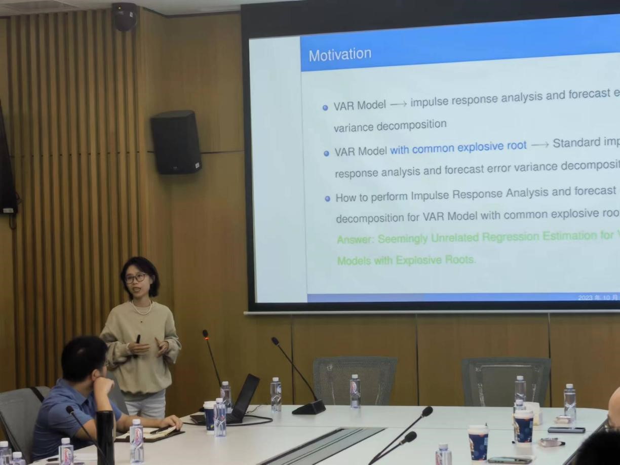 陈烨副教授与指导学生在国际A1期刊Oxford Bulletin of Economics and Statistics发表科研论文,该文章于2023年见刊。陈老师以“三人行必有我师焉”为题分享了与学生合作发表高水平学术论文的经验。她细致讲述了该论文初稿的形成、期刊拒稿、指导学生修改、再次投稿等过程,分享了经验和感受。另外,陈老师就校外学术交流过程中的知识产权保护意识等方面进行了分享。