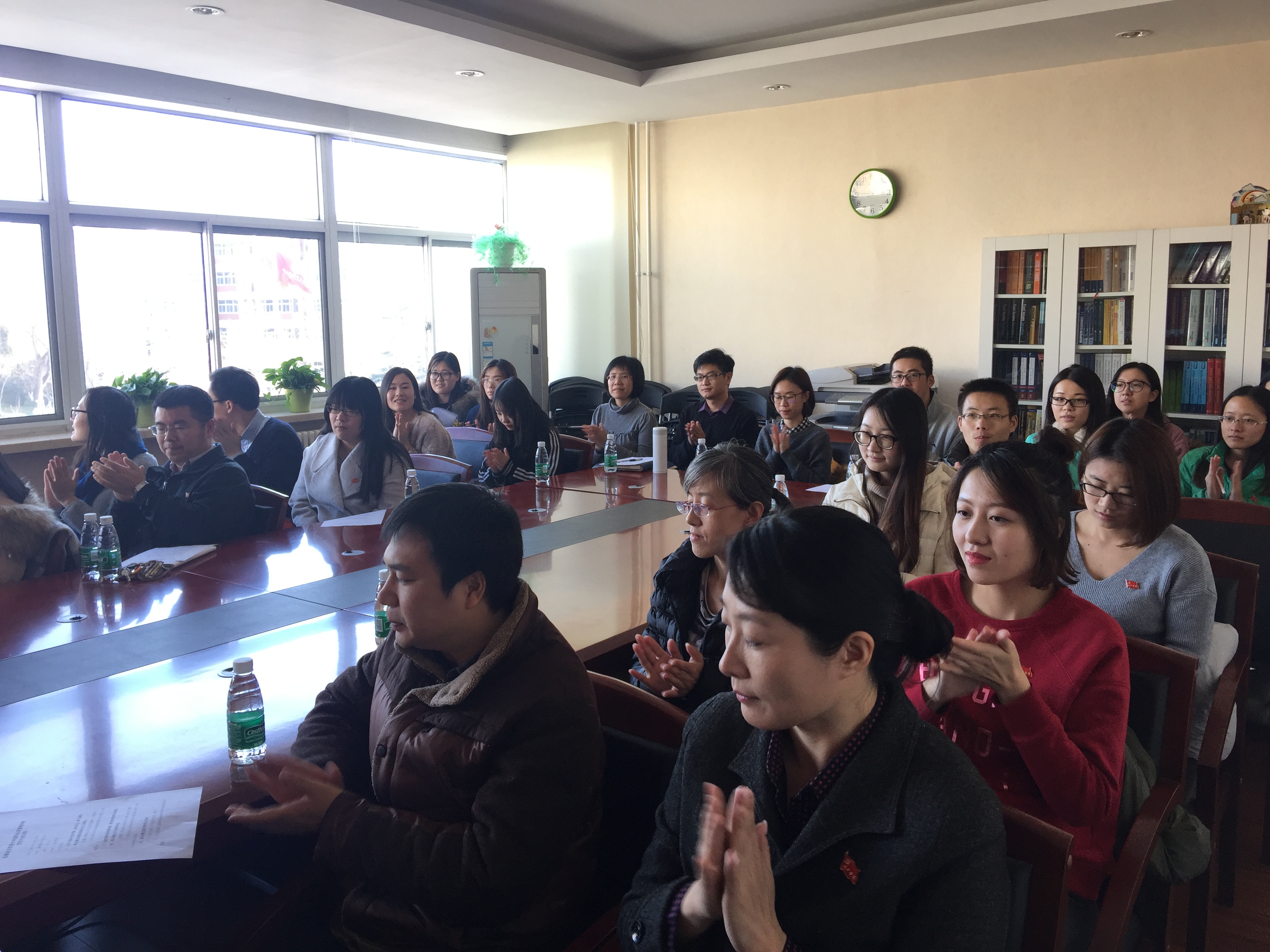 党员大会在雄壮的《国际歌》声中结束。党员大会结束后,召开了新一届党总支委员会第一次会议。会议推选刘文川同志任党总支书记,并对各位委员的职责进行了分工。即高静同志任组织与统战委员,林蔚同志任宣传与保卫委员,金湜同志任纪检委员,侯蕾同志任青年委员。同时,由于学院不设副书记职务,由高静以副院长身份代行副书记职责。