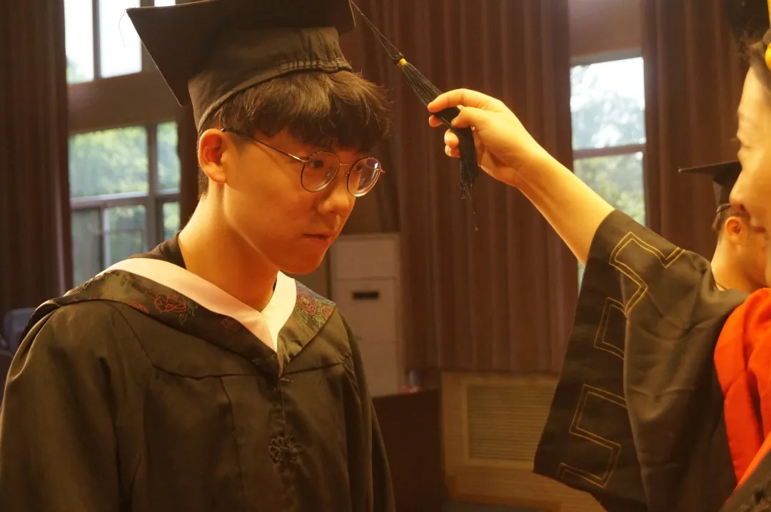 在欢快的音乐声中学位授予仪式拉开帷幕,李鲲鹏与高静逐一为毕业生拨穗、授予学位证书并表示美好的祝愿与诚挚的祝福。拨穗,意味着学有所成,学位授予,更是对大学期间努力拼搏的肯定。仪式的举行让毕业生的大学经历更加圆满完。