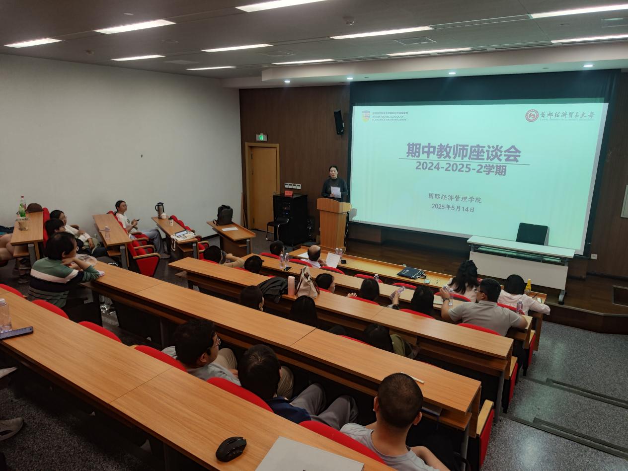 5月14日,学院召开教师座谈会,教学副院长高静主持会议,党委书记姜蓓蓓、院长马庆寅、副书记付明岩、副院长李委明、院长助理伍斌及本学期全体任课教师参会。
