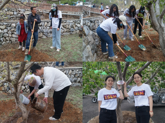 为增强劳动意识、培育劳动观念,党员们拿起锄头和铲子为海棠树除草松土,用水浇灌,与农民群众同劳动同学习,体验农耕艰辛,助力春季农忙。为纪念我院党支部与贾峪口村党支部此次共建活动,贾峪口村特意将大家浇灌、松土的樱桃树赠与我院,在樱桃树前,党员们进行了挂牌仪式,正式认领了“ISEM之树”。劳动教育使学生树立了正确的劳动观点和劳动态度,帮助学生养成良好的劳动习惯,期待快猫短视频 青年学子可以迎着朝阳、蓬勃生长。
