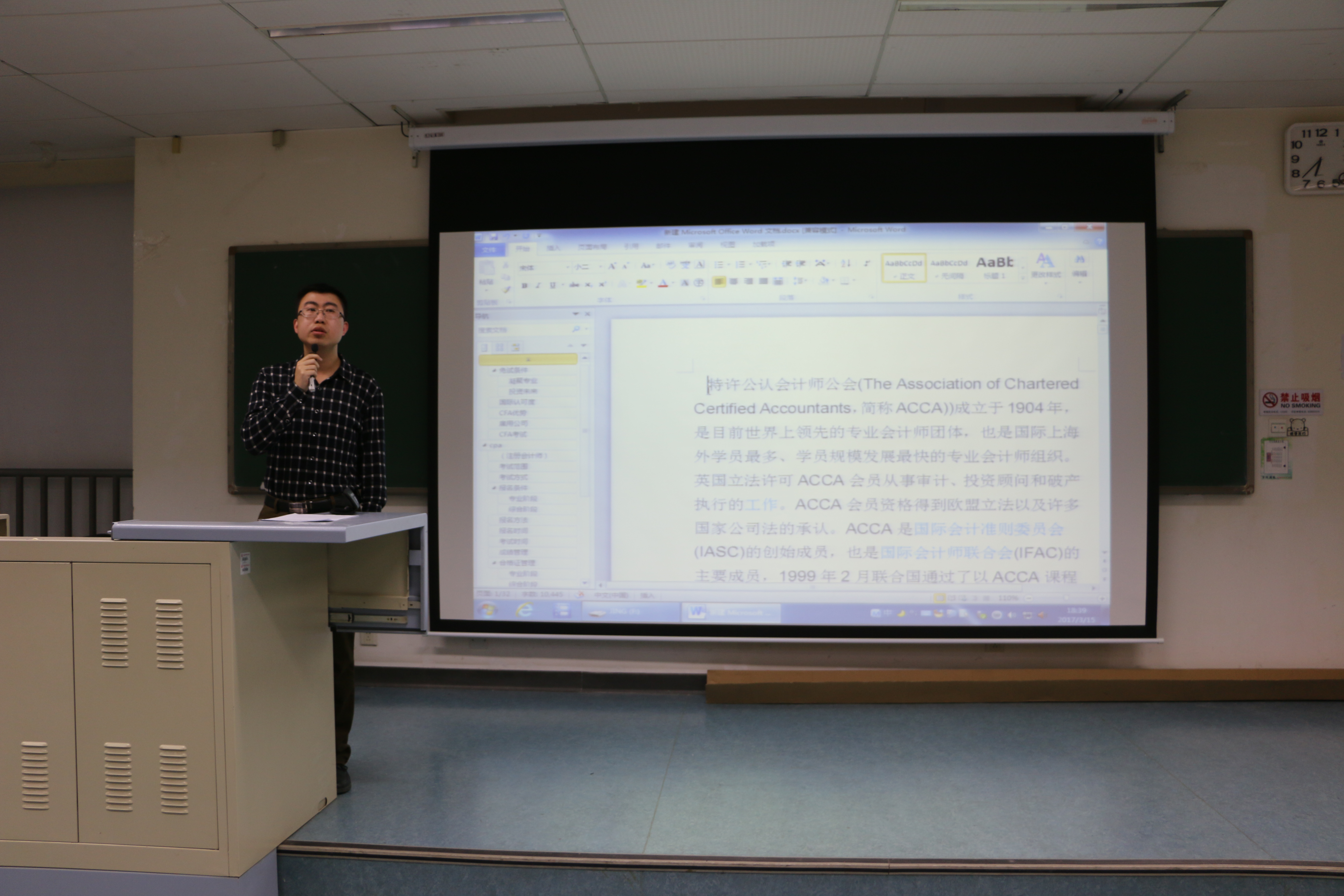 讲座上,王琼用他自己的学习和工作面试的经历,让同学们意识到相关从业证书对自己职业发展的重要性以及提早树立目标,提前做准备的必要性。着重为大家介绍了ACCA、CFA和CPA这三种考试的详细信息。在介绍ACCA考试时,王琼通过对比英国税法与中国税法的不同,让同学们更清晰了解了ACCA考试科目的内容;并用马云阿里巴巴上市的经历,让同学们了解了股权融资与银行信贷等金融方面的知识。同时也介绍了有关ACCA考试费用,免试条件等相关的考试信息。