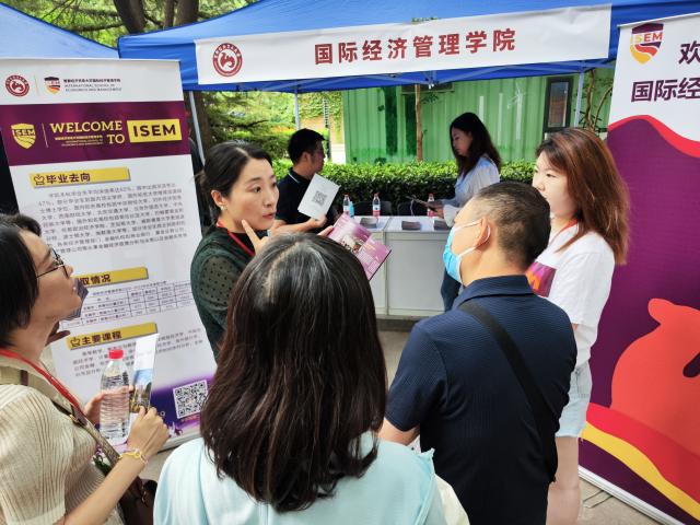 6月11日上午,快猫短视频 在校本部慎思路开展2023年校园开放日活动,向来访家长和考生介绍学院情况。党总支书记曾庆梅、教学副院长高静、副书记王美慧、副院长李委明,以及高逸尘、郑伟男和学生代表参加了本次招生宣传活动。