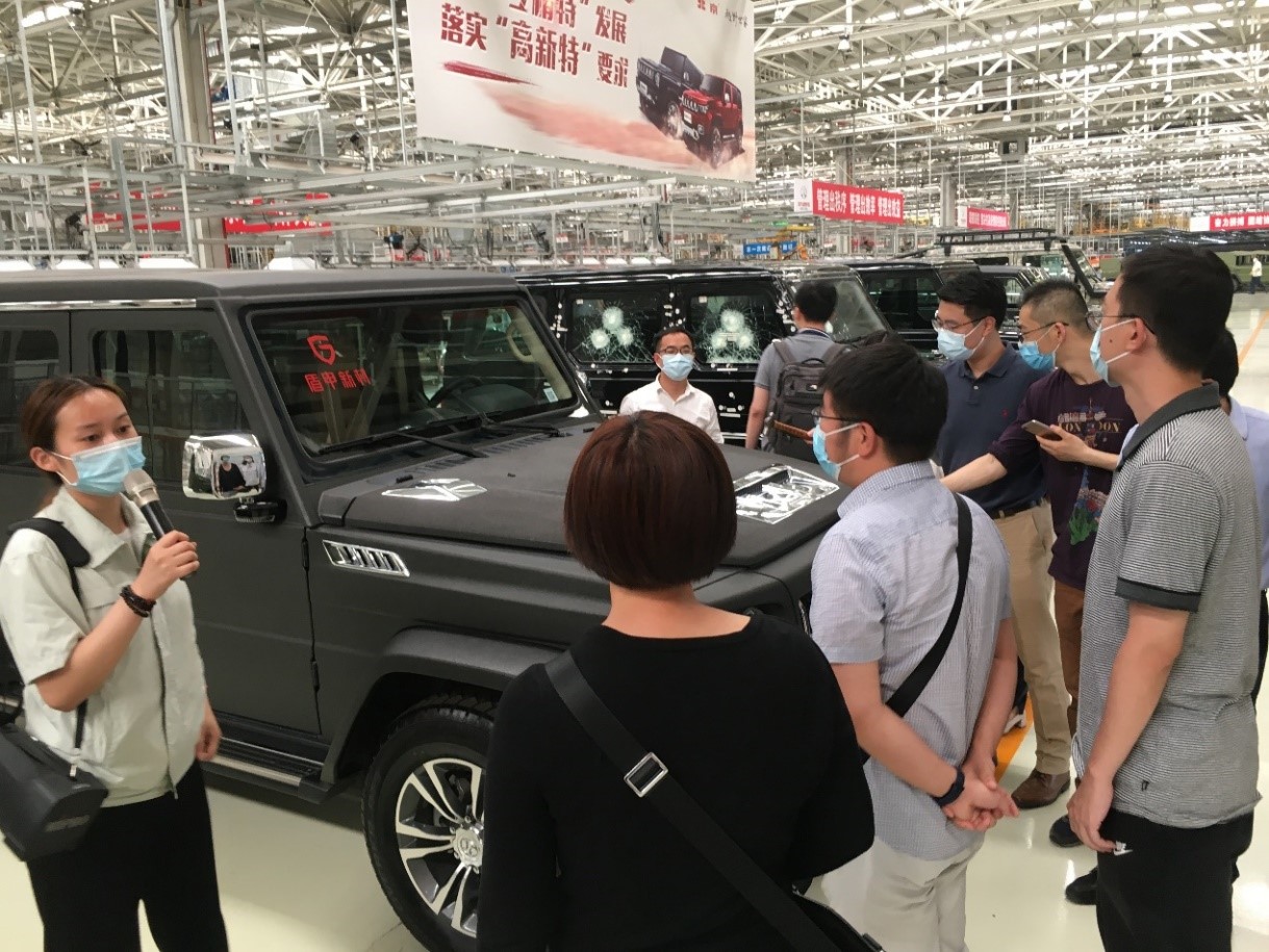 离开集团总部后,老师们乘车到达北汽越野车公司,该公司致力于自主品牌越野车的研发和生产制造。2017年,香港回归祖国20周年和建军90周年阅兵检阅车的研发制造和服务保障任务就是由北汽越野车公司完成的。