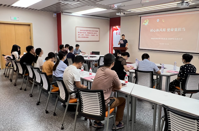 为庆祝中国共产党成立101周年,迎接党的二十大胜利召开,2022年7月8号下午,学院教师党支部于博远楼二层党员之家举办“初心沐春雨 使命重担当”七一主题党日活动。全体教师支部党员和入党积极分子参加,支部书记牛毅主持会议。