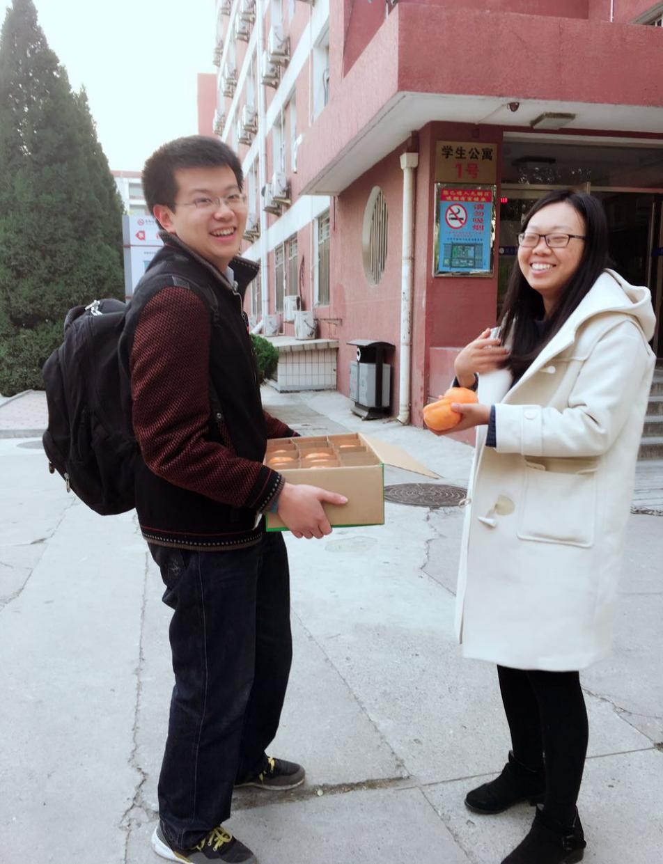 “幽姿不入少年场。无语只凄凉。一个飘零身世,十分冷淡心肠。” 11月11日俗称光棍节,加之同学们经历了三门期中考试的洗礼,孑然一身,孤独与凄凉。本周五,快猫短视频 李劭琛师兄和夏晓佳师姐代表学院和研会给研一同学们带去了来自学院的中期慰问。 这次的慰问品是两箱柿子,秋冬吃柿子可以清热止血,中医有云柿霜润肺,多吃柿子也有助于对抗雾霾。师兄师姐把柿子送到了宿舍,并关切的询问了同学们的学习和生活情况。大家表示虽然柿子是凉性水果,但握在手里,竟感受到浓浓的温暖。
