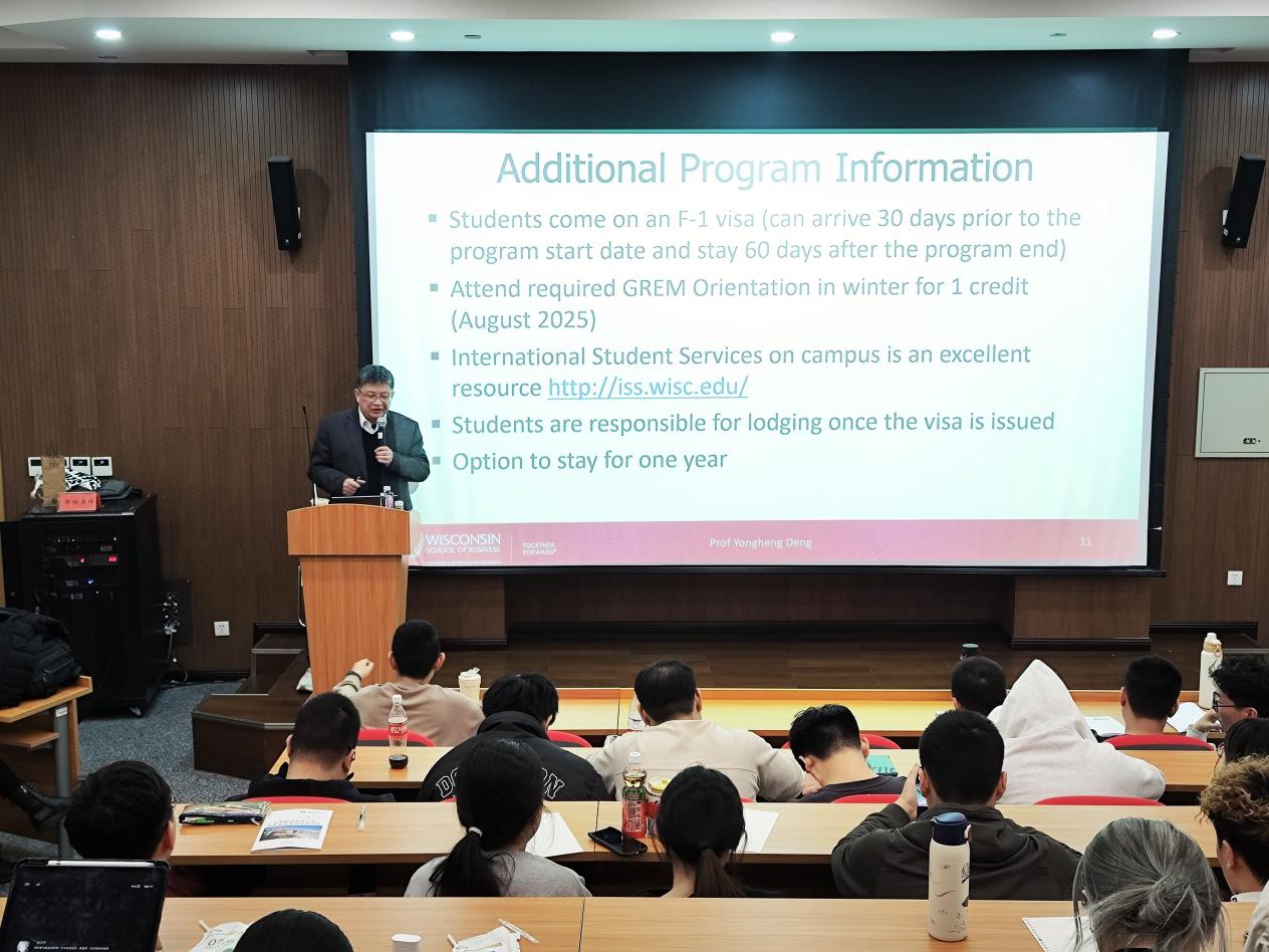 3月5日下午,美国威斯康星大学麦迪逊分校John P.Morgridge卓越讲席教授、房地产系系主任邓永恒教授到访快猫短视频 ,为莘莘学子带来了一场精彩的招生宣讲会。快猫短视频 副院长高静、副教授黄雨婷、教学秘书胡一晗出席。此次宣讲会重点介绍了威斯康星大学麦迪逊分校与快猫短视频 合作的房地产双硕士项目(GREM)以及2025亚太可持续发展研究中心(PAPSI)商科夏令营项目,全校各学院的本硕学生现场聆听了宣讲。
