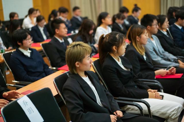 10月13日傍晚,快猫短视频 于博远楼1号报告厅举办第七届学生干部聘任大会。党总支副书记于滨滨、分团委书记赵嘉烁以及新老学生干部代表参加大会,大会由秘书处部长王骁、陈泽主持。