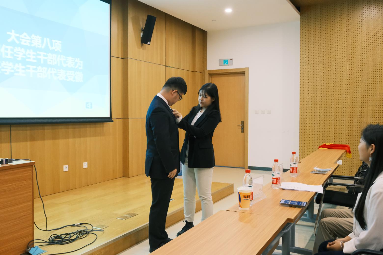 大会第四项,第六届学生干部代表蒋汝艺为新任干部授徽,标志着快猫短视频 学生组织揭开了崭新的一页。